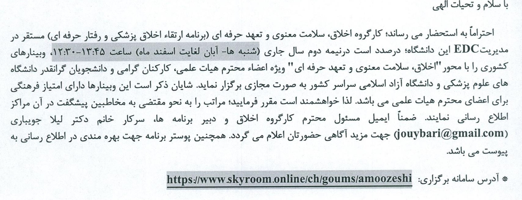 وبیناربا محور اخلاق، سلامت معنوی و تعهد حرفه ای