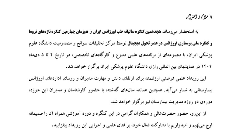 هجدهمین کنگره سالیانه طب اورژانس ایران و همزمان چهارمین کنگره تازه های تروما و کنگره ملی پرستاری اورژانس در عصر تحول دیجیتال